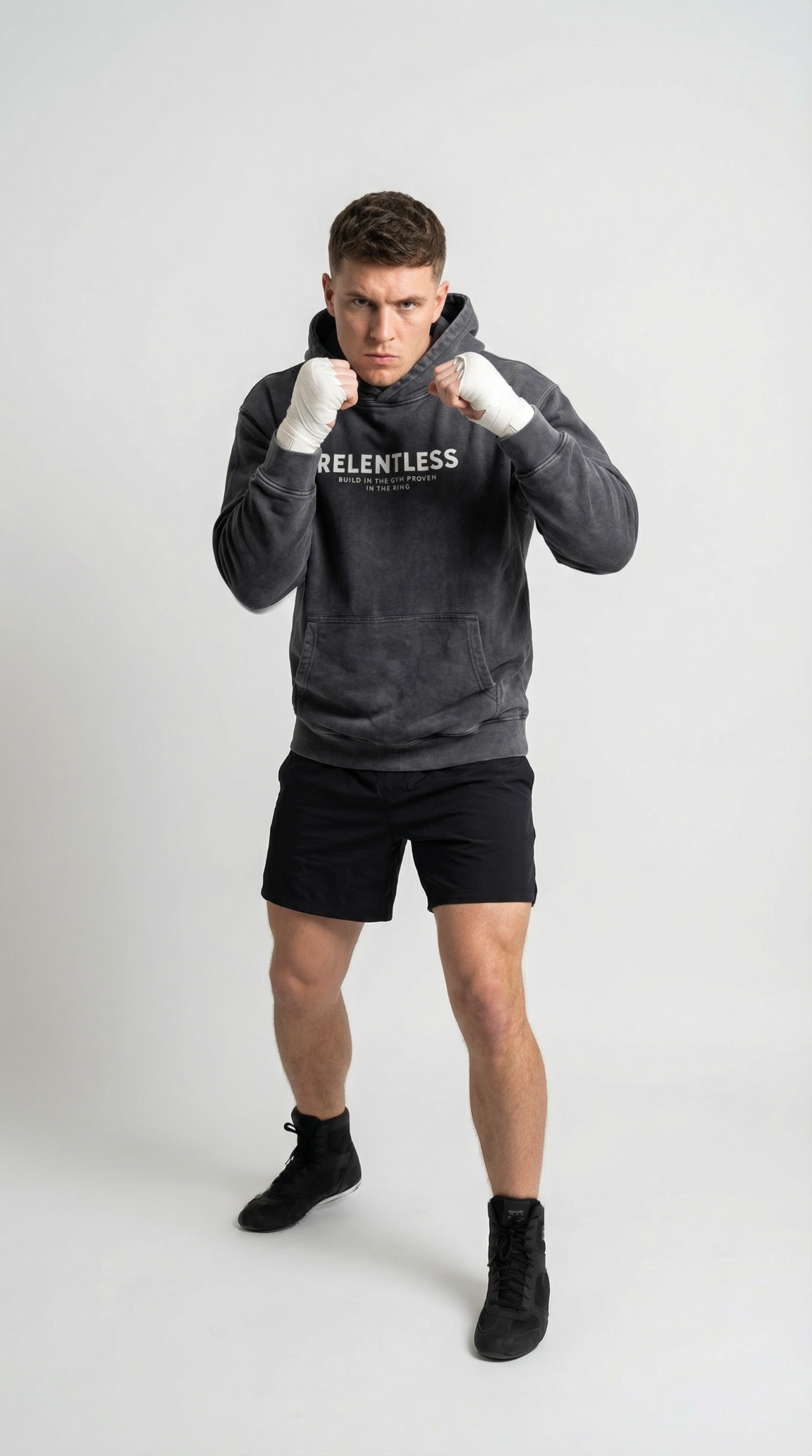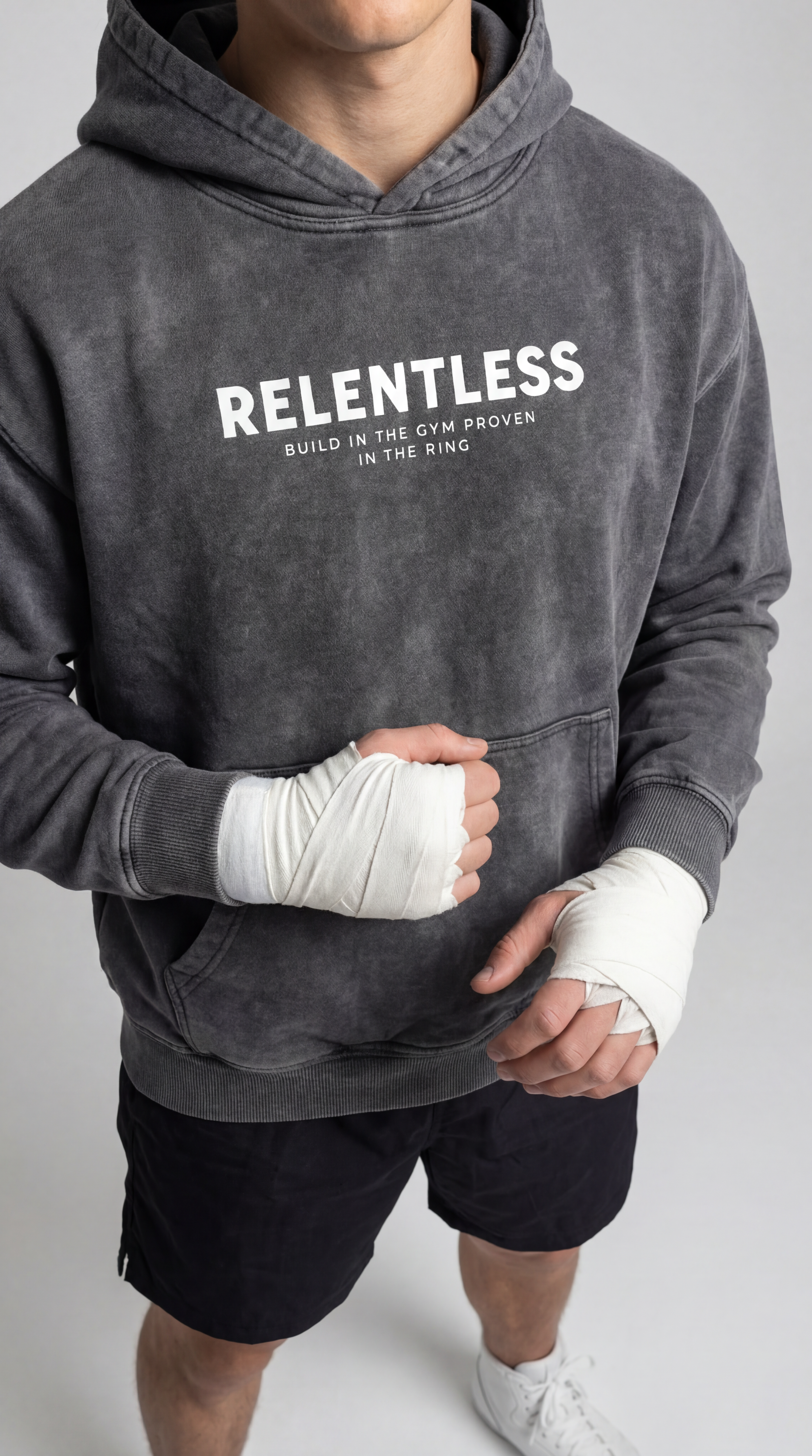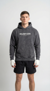 Built for those who refuse to break. The Relentless Hoodie is inspired by Nieky Holzken. Designed for life in and around the gym before the grind, after the rounds, and everywhere in between. Crafted from ultra heavy weight French Terry cotton, it delivers a solid, premium feel without sacrificing comfort or breathability.Featuring an oversized fit, this hoodie is garment dyed and pre-shrunk to ensure long-lasting shape and a worn-in feel from day one. Soft on the inside, durable on the outside built to move with you through every session. Across the back, the statement says it all.